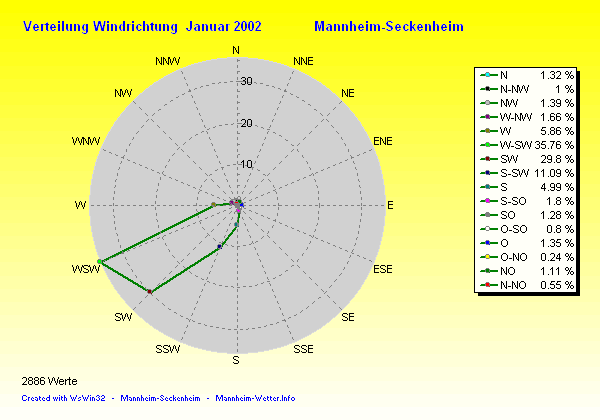 Die Durchschnittstemperatur für den Monat Januar 2002 lag bei 1.09°C. Die Abweichung vom langjährigen Mittel war -0.11°C.