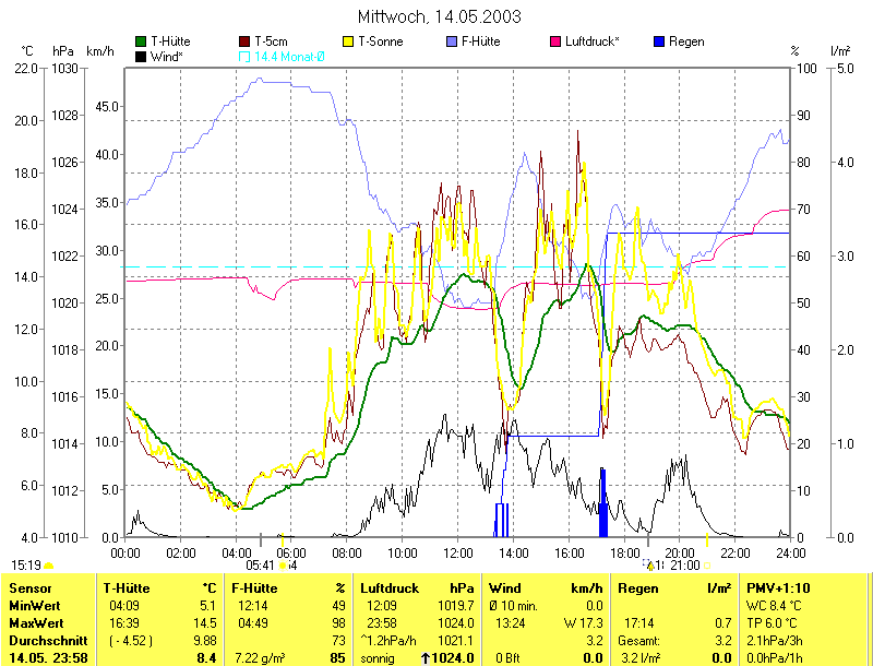 Die Grafik zeigt u.a. den Temperaturverlauf und die Regenmenge (Seckenheim wurde nur gestreift)