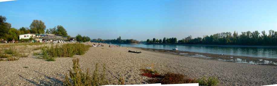 Strandbad Mannheim am 27.September bei einem Rhein-Pegel von 93cm; Der Rekord war am 23.07.2003 mit 90cm