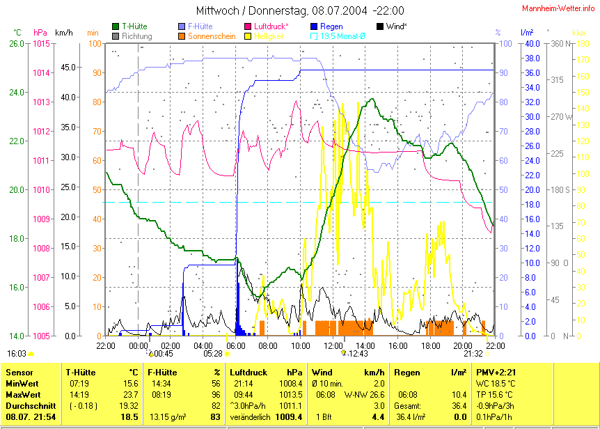 Die Grafik zeigt u.a. den Temperaturverlauf und die Regenmenge.