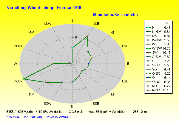 Die Durchschnittstemperatur für den Monat Februar 2010 lag bei 2.97°C. Die Abweichung vom langjährigen Mittel war +0.47°C.